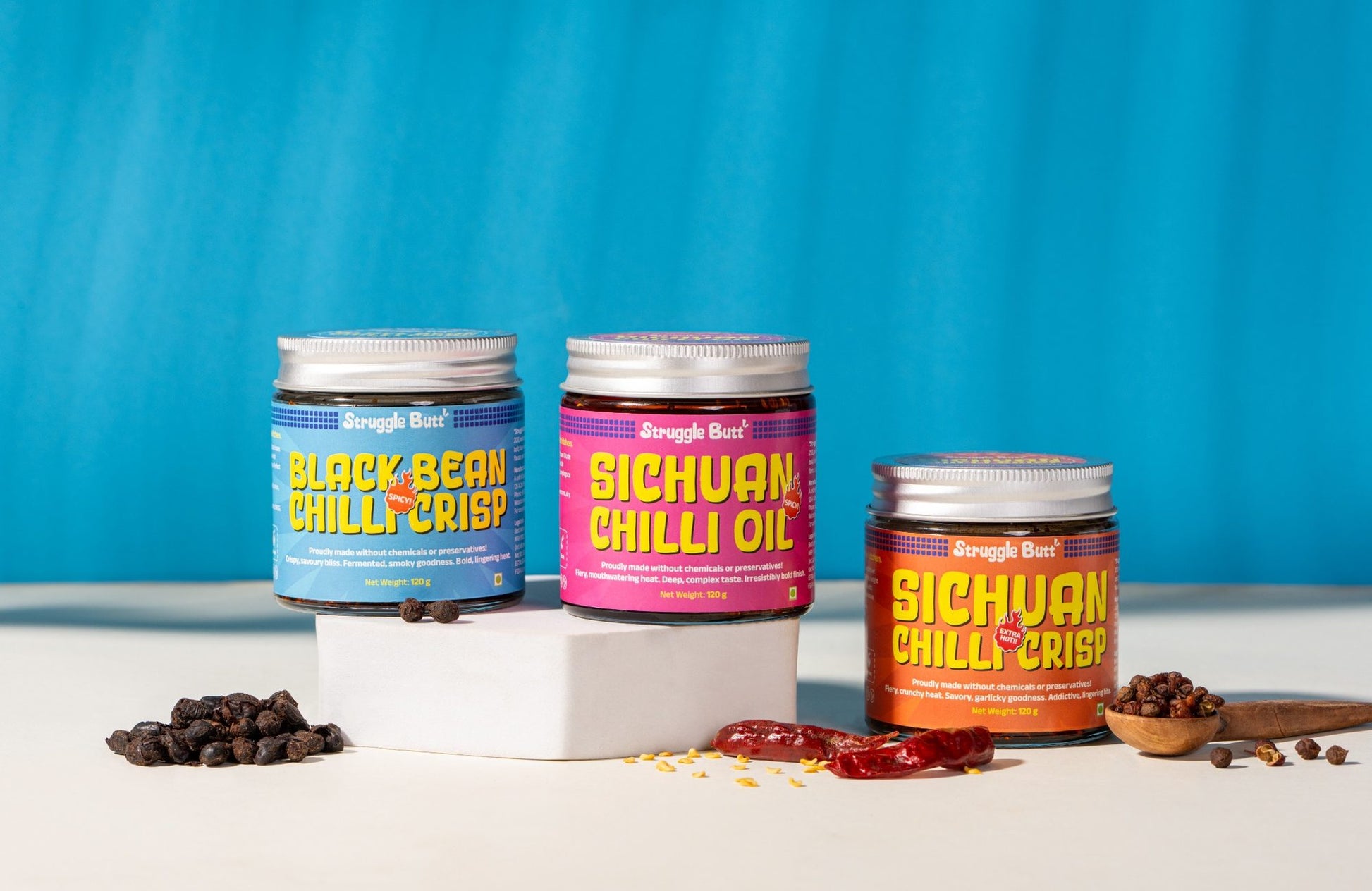 Our combo range is a flavour playground smoky, spicy, crunchy, and deeply umami. From rich black bean jams to fiery chilli crisps and aromatic garlic oils, each set is crafted to turn simple meals into crave-worthy dishes. Drizzle, dip, toss, or spoon straight from the jar no boring bites allowed 🔥🍜✨